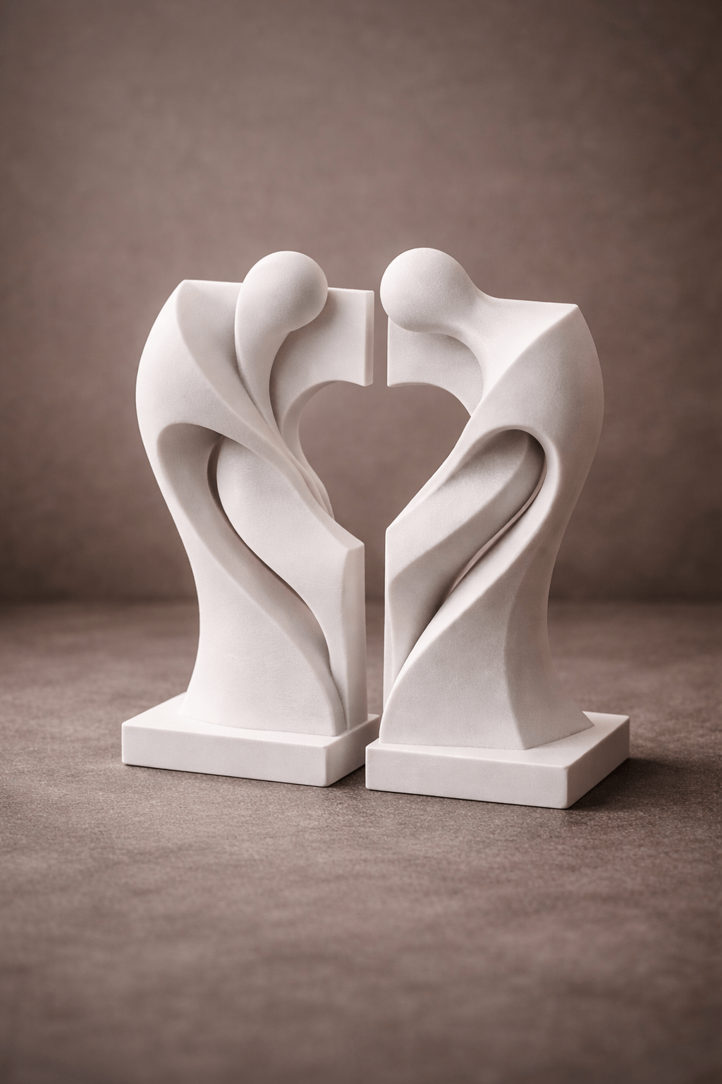 Cette sculpture couple est une pièce design, réalisée pour représenter deux silhouettes qui se rejoignent, avec un rendu moderne et élégant.