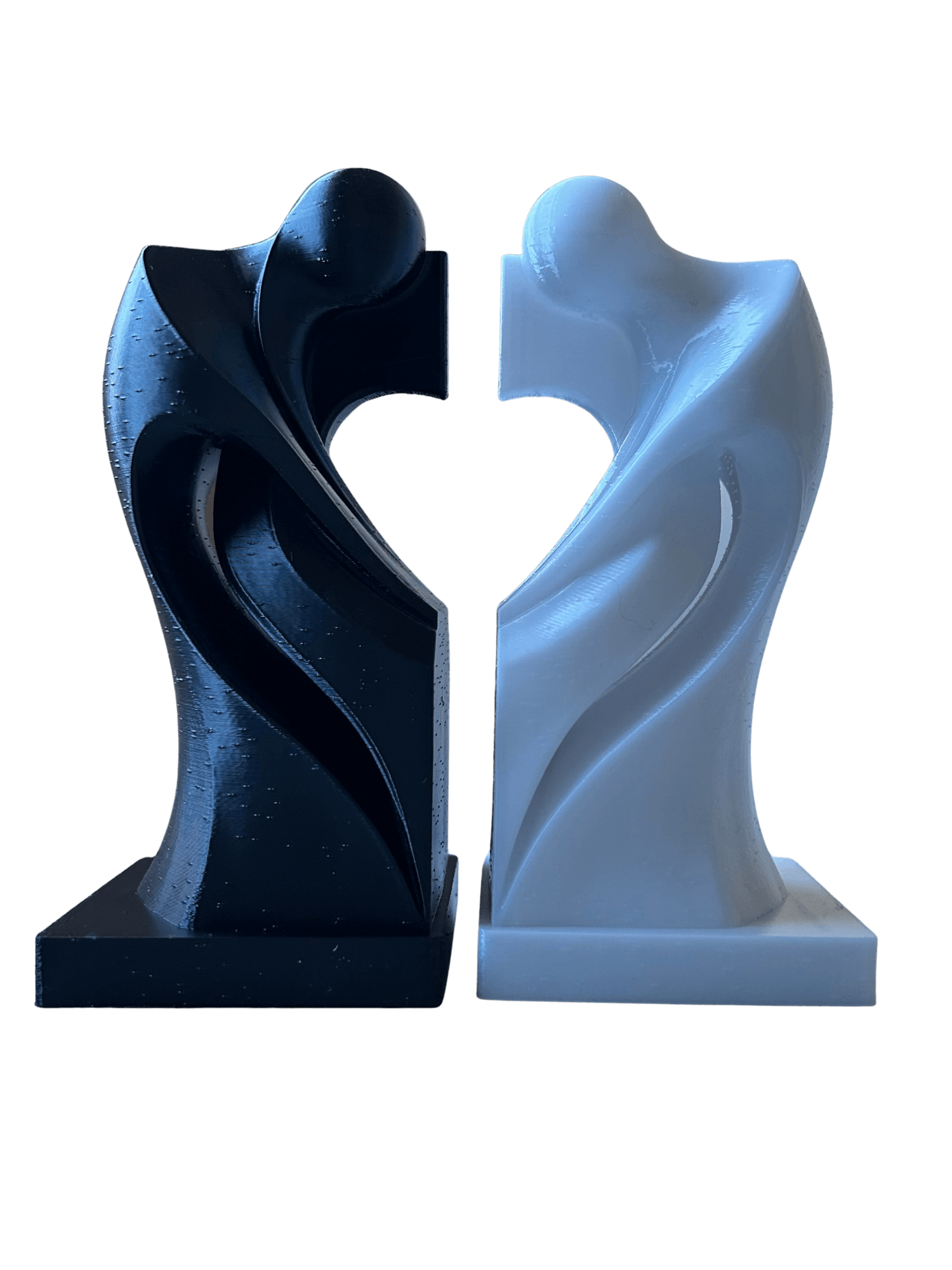 Cette sculpture couple est une pièce design, réalisée pour représenter deux silhouettes qui se rejoignent, avec un rendu moderne et élégant.